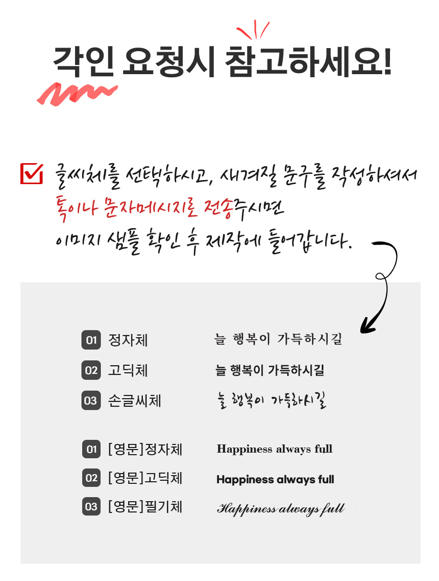 - Àμ⸦ ÇϽô °æ¿ì, ´ç»ç¿¡¼´Â °í°´´ÔÀÌ º¸³»ÁֽŠ¿ø°í ¹× µµ¾ÈÀ» ±âº»À¸·Î ÇÏ¿© Çʸ§À» Á¦ÀÛÇϰí, Á¤È®¼ºÀ» ±âÇϱâ À§ÇØ °í°´´Ô°ú ÀçÈ®ÀÎ ÈÄ ½ÇÁ¦ Àμâ ÀÛ¾÷À» ÇÕ´Ï´Ù. (ÃÖÁ¾ µðÀÚÀÎ ½Ã¾ÈÀÇ À߸øµÈ È®ÀÎÀº Ã¥ÀÓÀÌ ¼ö¹ÝµÇ¹Ç·Î Á¤È®ÇÏ°Ô È®ÀÎÇÏ¿© Áֽñ⠹ٶø´Ï´Ù.)