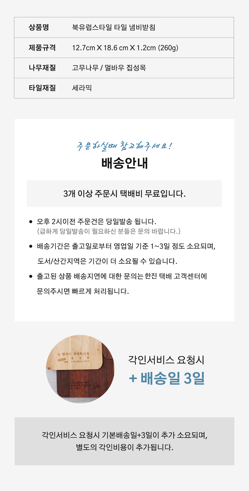 - ±¹³» ÅÃ¹è ¹è¼Ûºñ´Â ¹«·á ¹è¼ÛÀ» ¿øÄ¢À¸·Î Çϳª Á¦ÀÛ »óǰ¿¡ µû¶ó »óÀÌÇÏ°Ô Àû¿ëµÉ ¼ö ÀÖ½À´Ï´Ù.